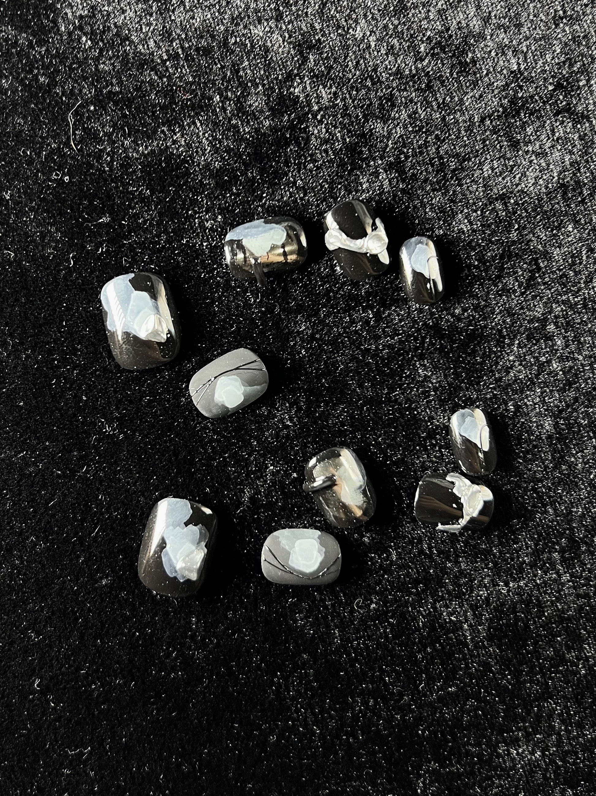 Exquisite hand-painted press-on nails crafted with passion by skilled nail technicians.