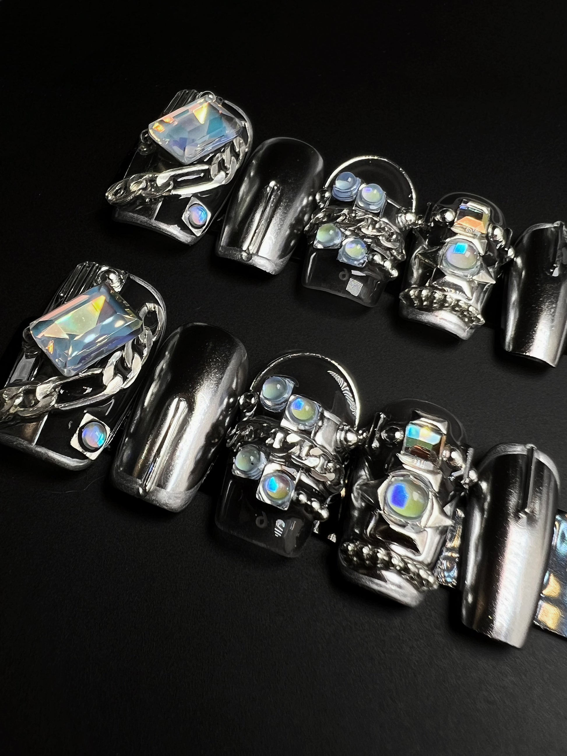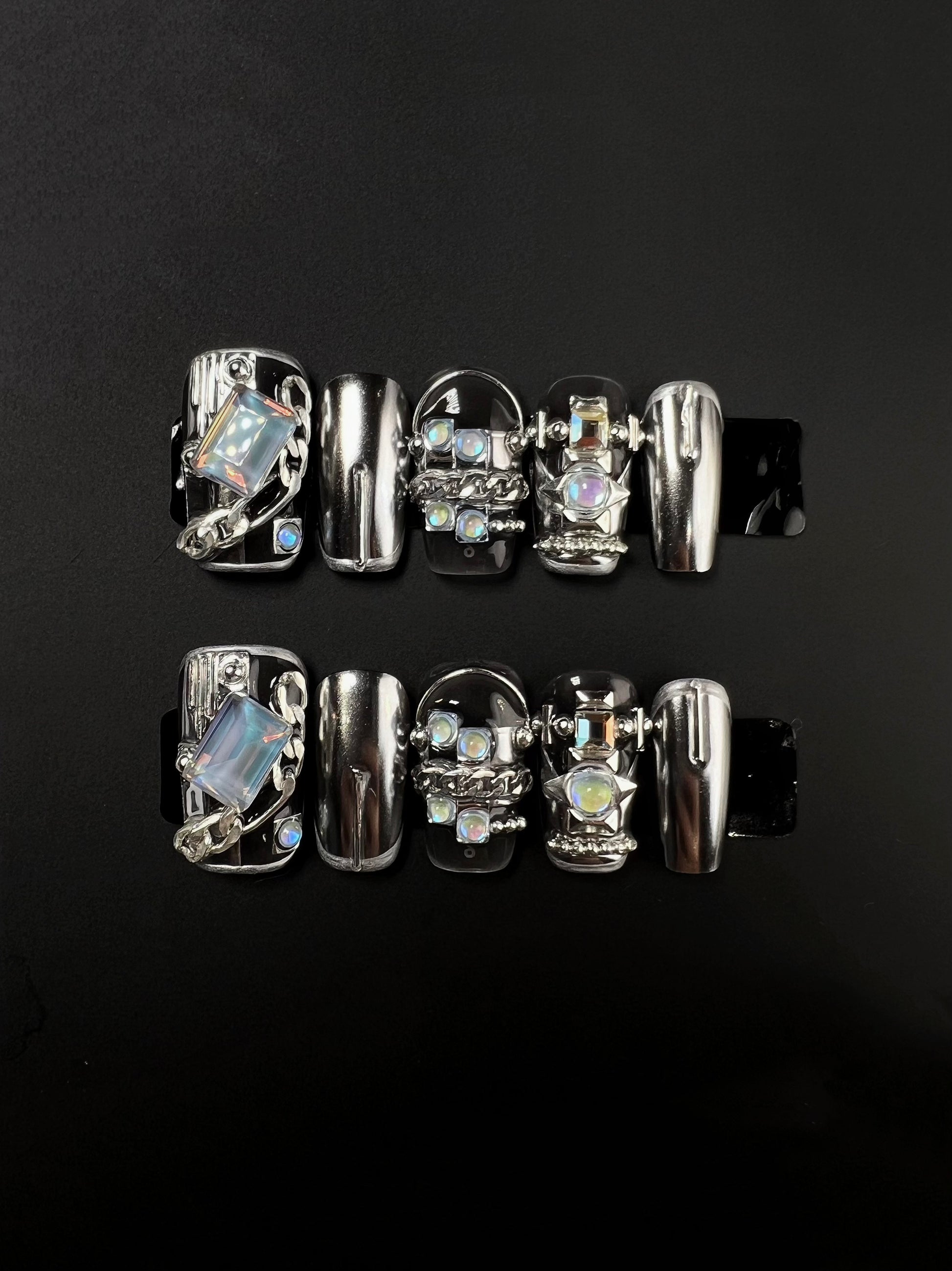 Experience a touch of allure with our Dark Cool Style Press On Nails. Unleash your inner fashionista as you effortlessly transform your nails into a statement of elegance and mystery. These press-on nails are meticulously designed to captivate attention, making every day a runway for your personal style.