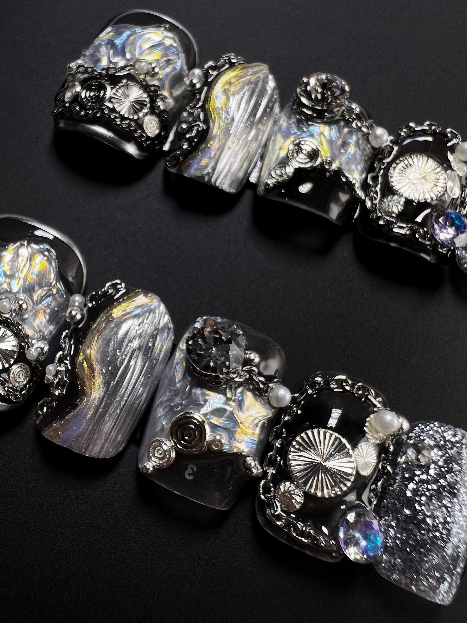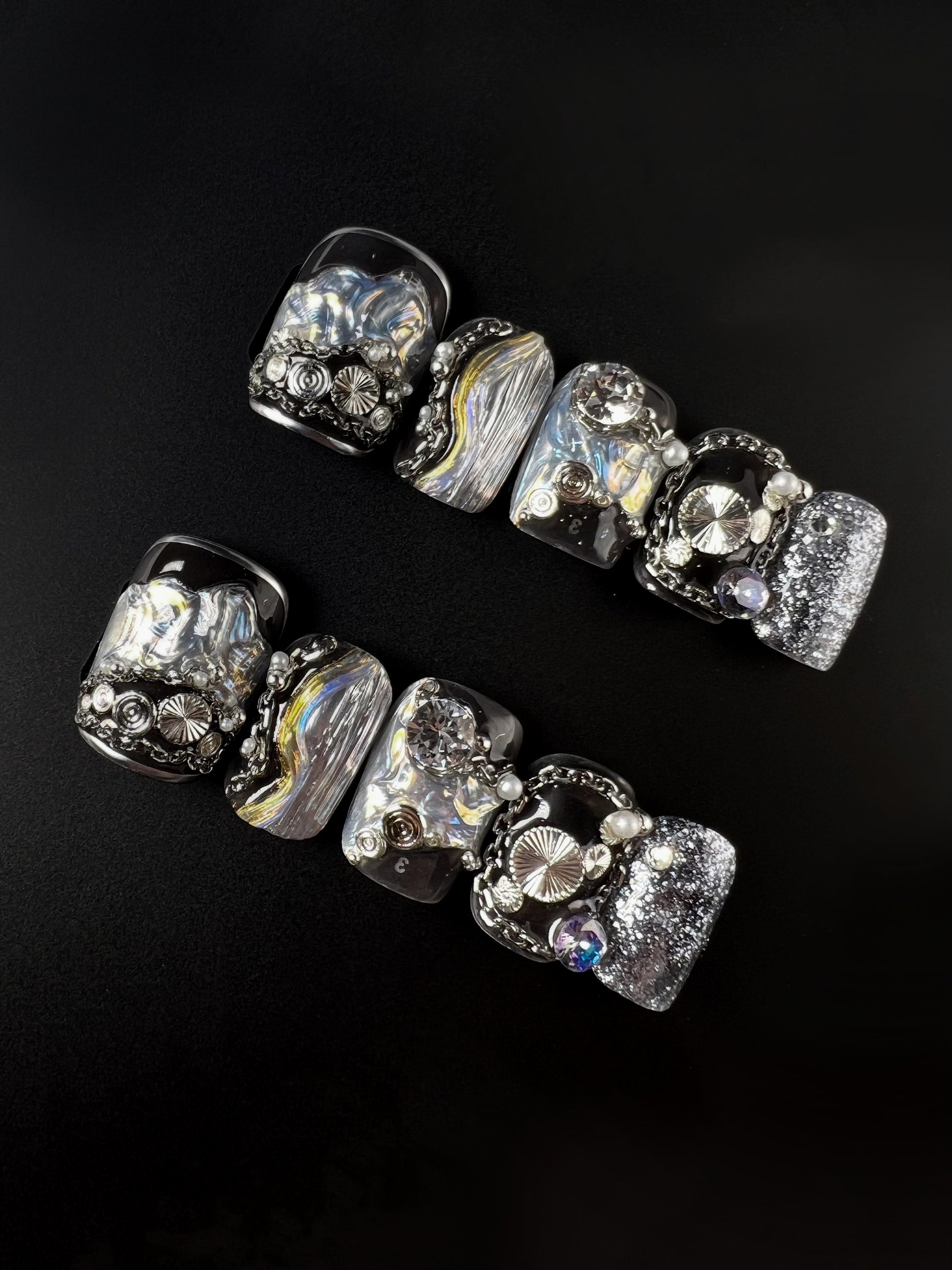 Exquisite hand-painted press-on nails crafted with passion by skilled nail technicians.