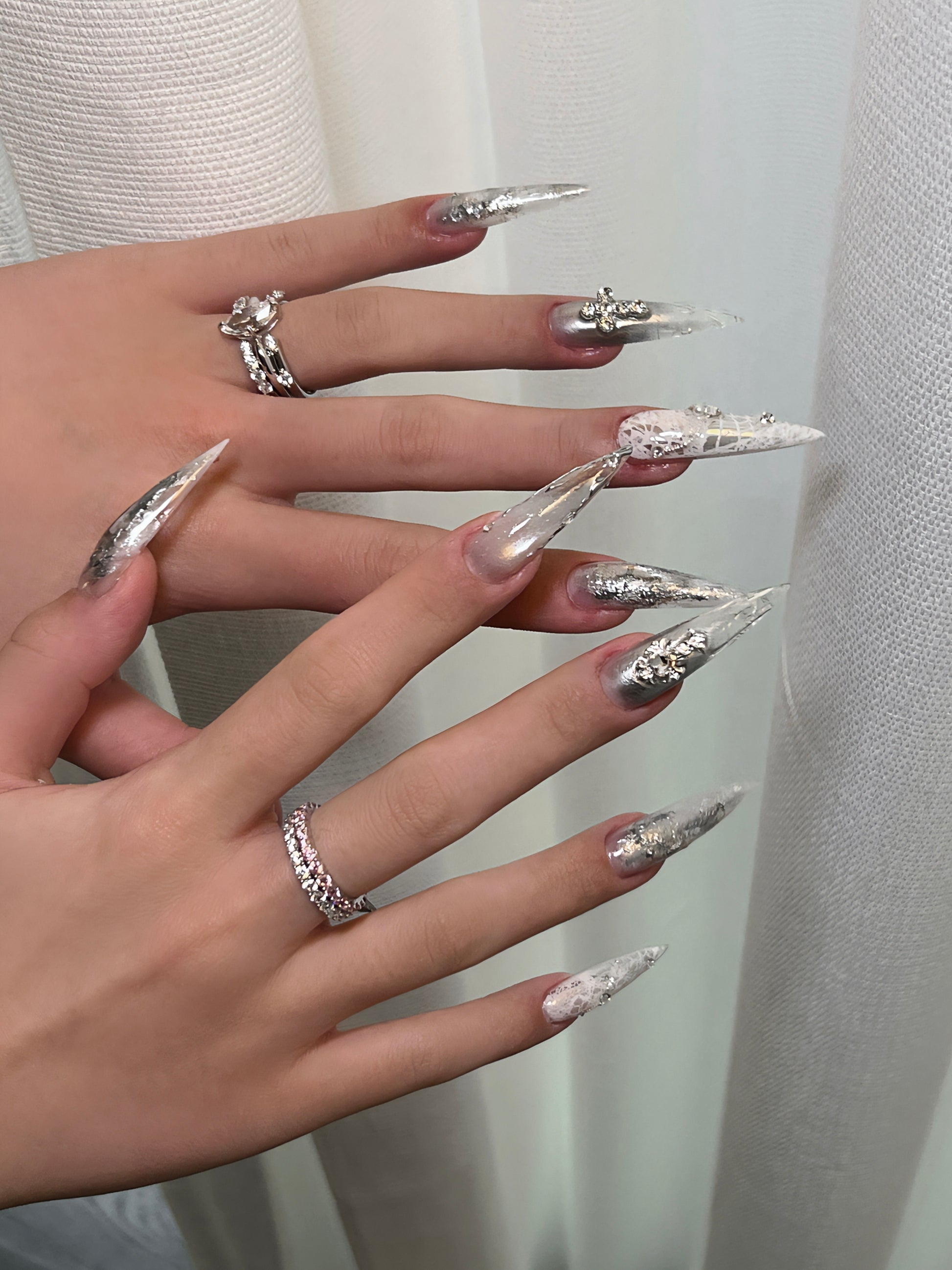 Each tip is finished with reflective mirror gel and fine glass flecks — designed to catch light from every angle.