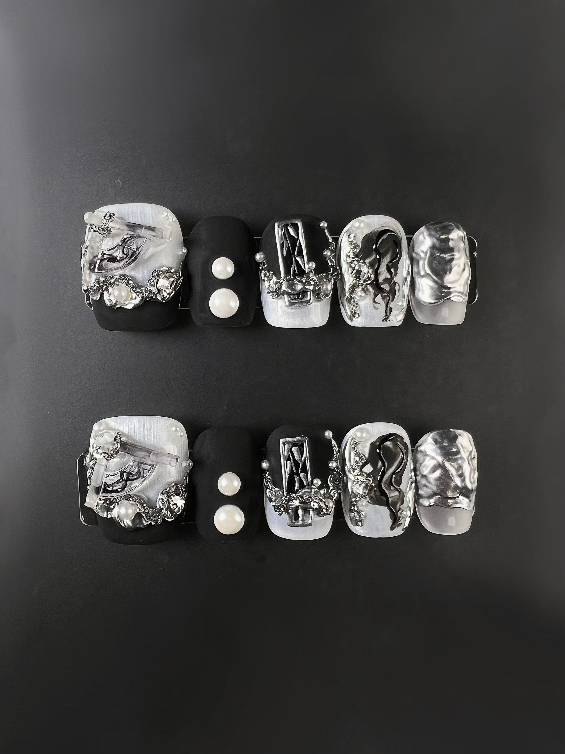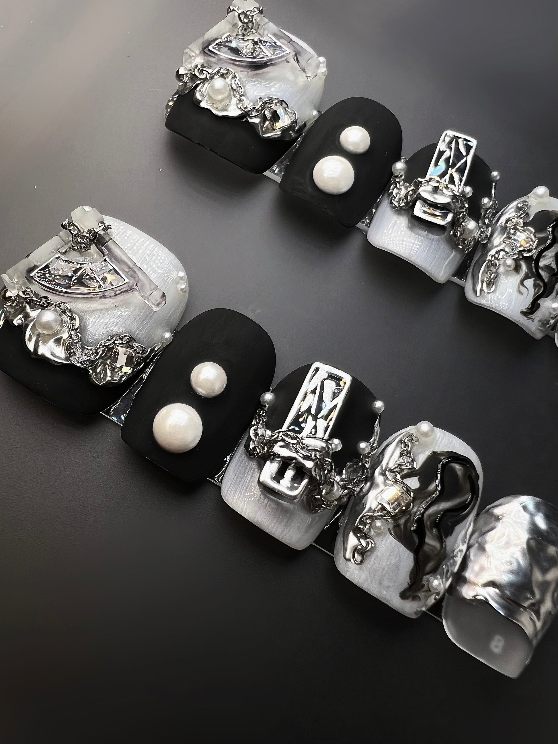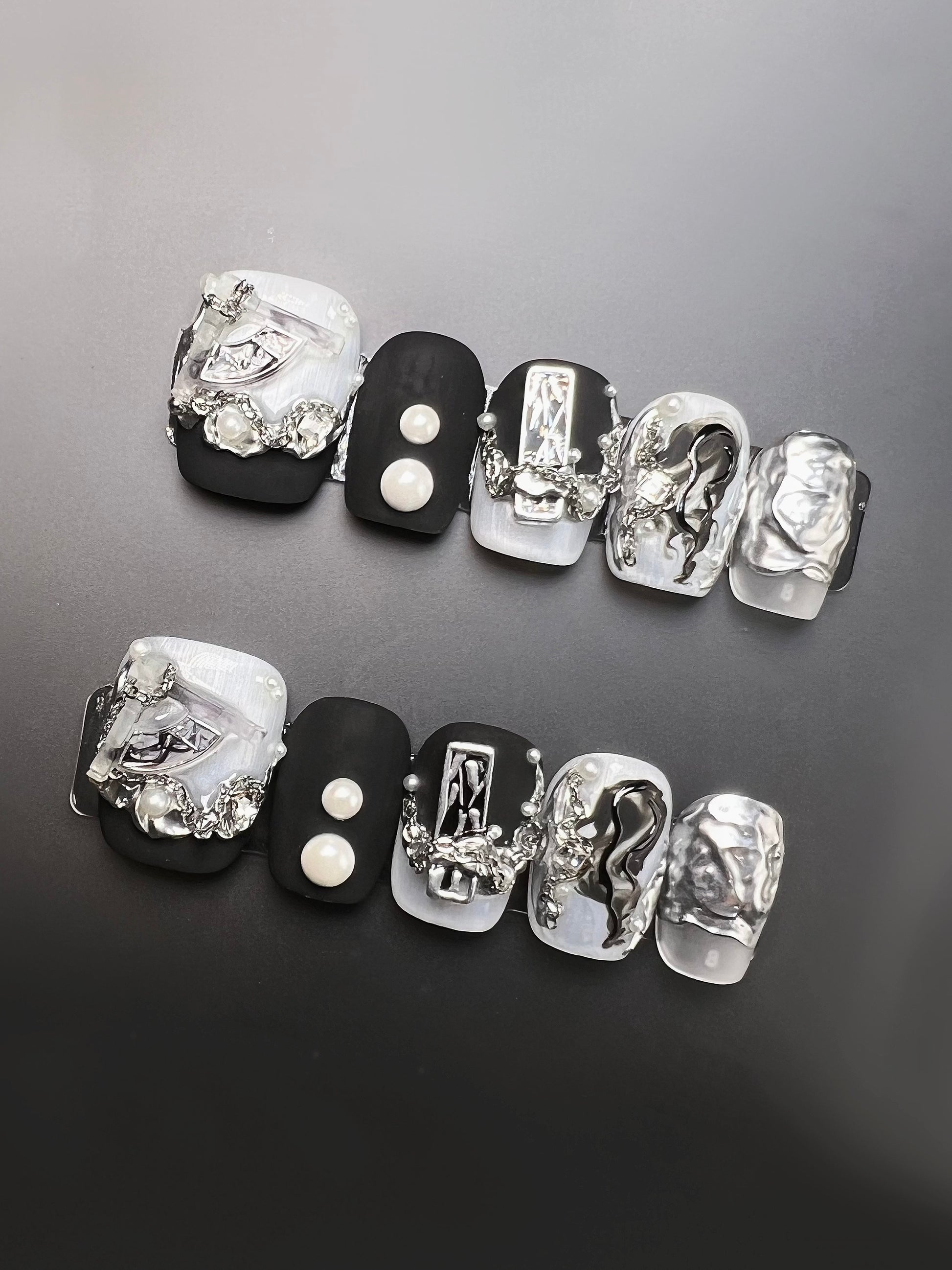 Exquisite hand-painted press-on nails crafted with passion by skilled nail technicians.